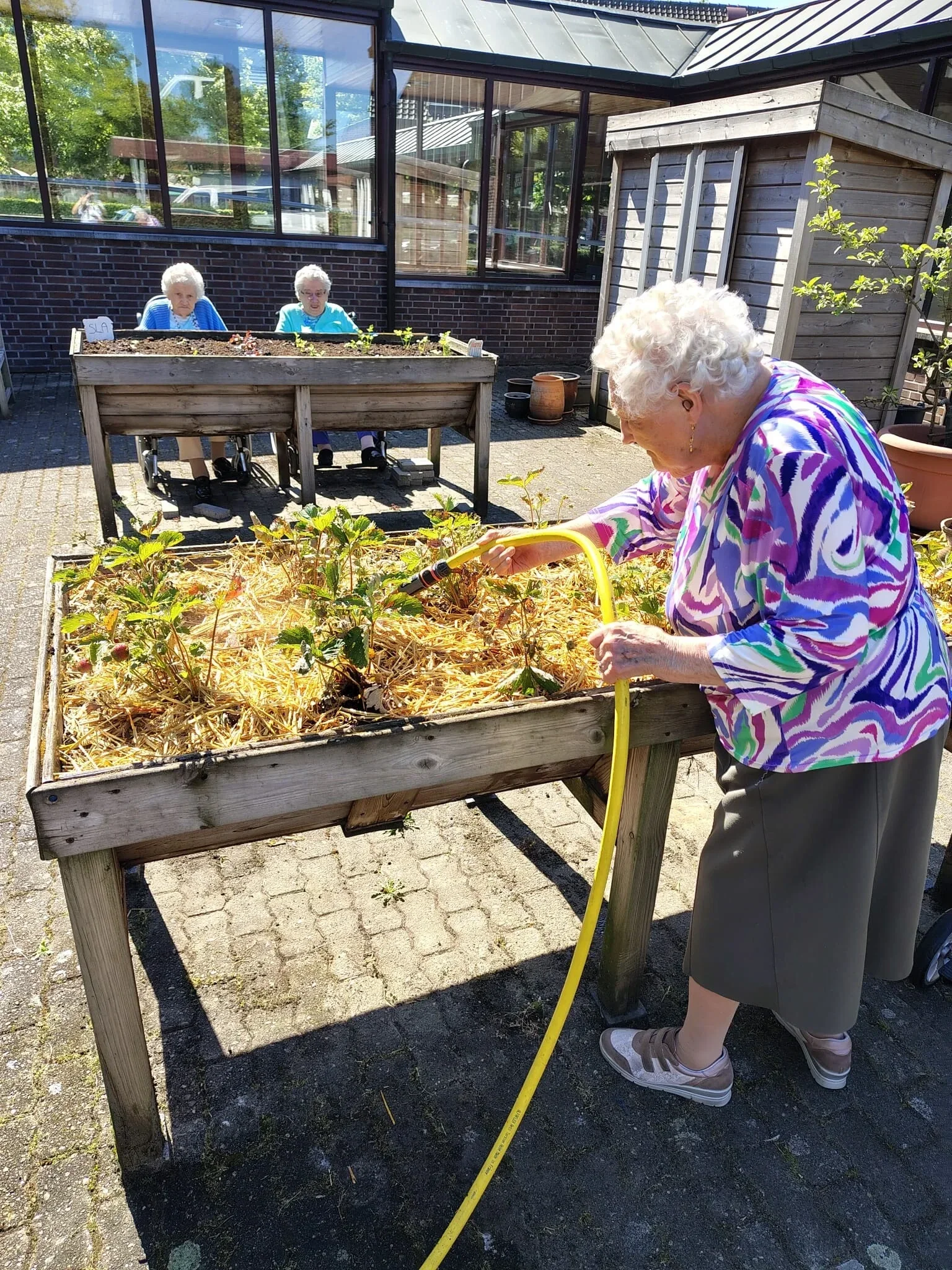 Nu de ijsheiligen voorbij zijn, hebben we onze Warme Tuin opnieuw aangeplant. Enkele vrijwilligers van de Landelijke Gilden uit Brecht kwamen ons helpen bij het zware werk. De 7 bakken werden voorzien van nieuwe aarde en onze bewoners konden er nadien in planten en zaaien. Binnenkort kunnen we weer genieten van overheerlijke aardbeitjes, knapperige boontjes, verse sla, zoete kerstomaatjes en nog zoveel meer! ðĨŽðĨðŦðð