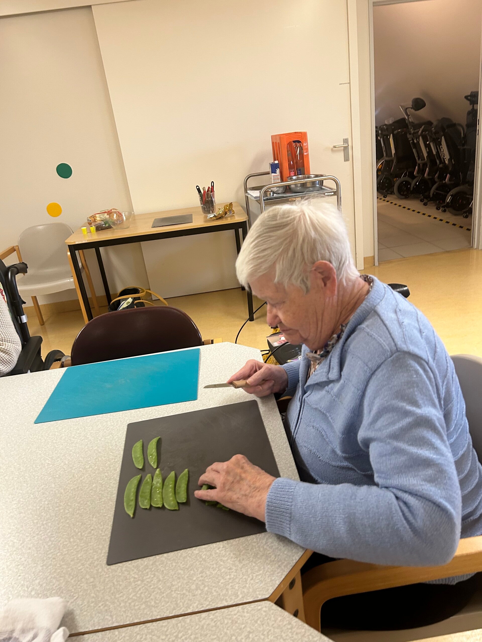 Vandaag maakte de kookgroep weer een heerlijke menu klaar. Eerst alles zelf voorbereiden, daarna lekker samen tafelen.