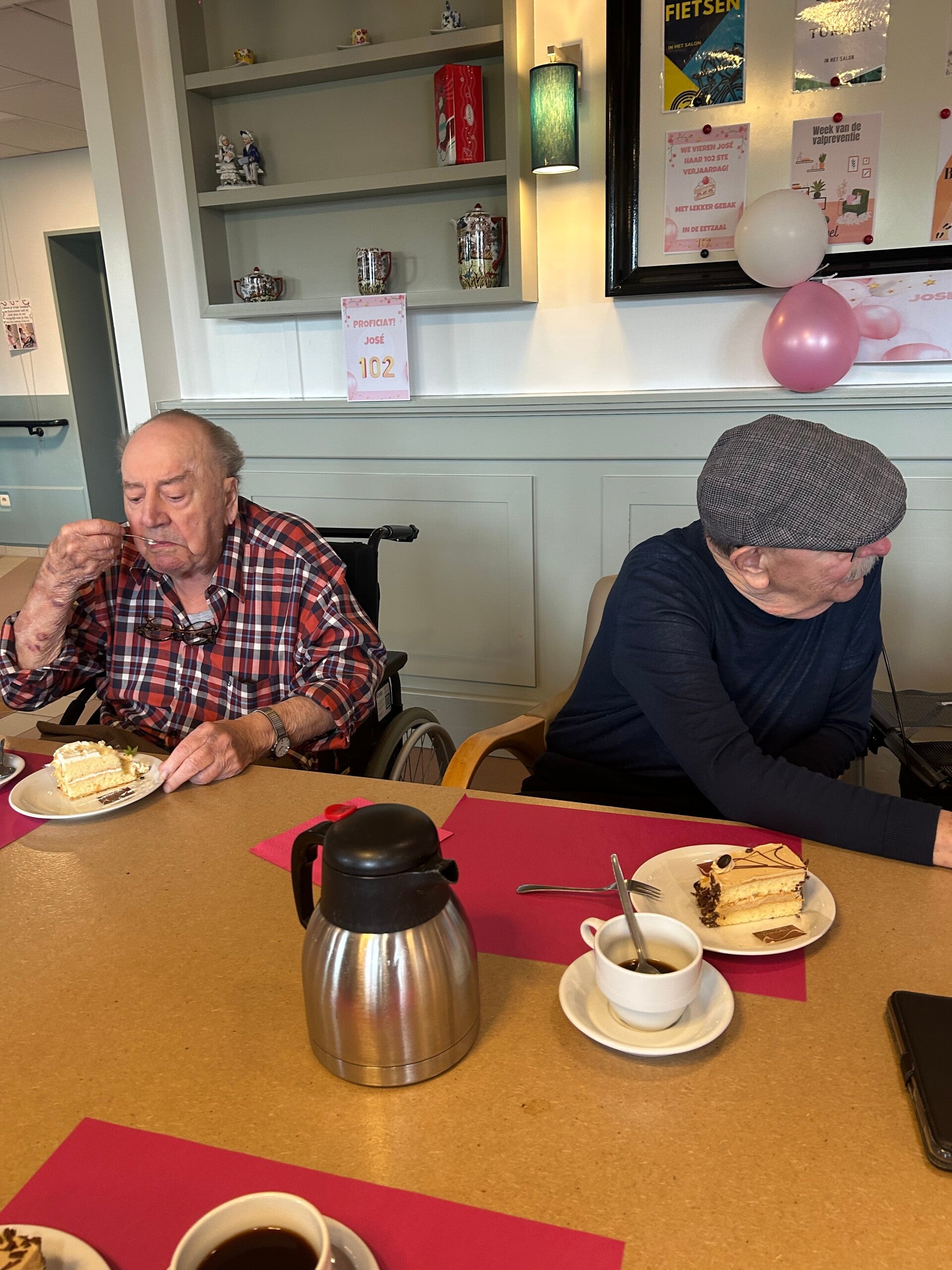 José Van Looveren werd 102 jaar op woensdag 22 april. Op maandag vierde ze samen met de bewoners van de boomgaard-bloemenhof met lekker gebak. Op woensdag at ze samen met de familie, een heerlijke en gezellige dag! Ook de burgemeester en schepenen kwamen langs om José uitgebreid te feliciteren!